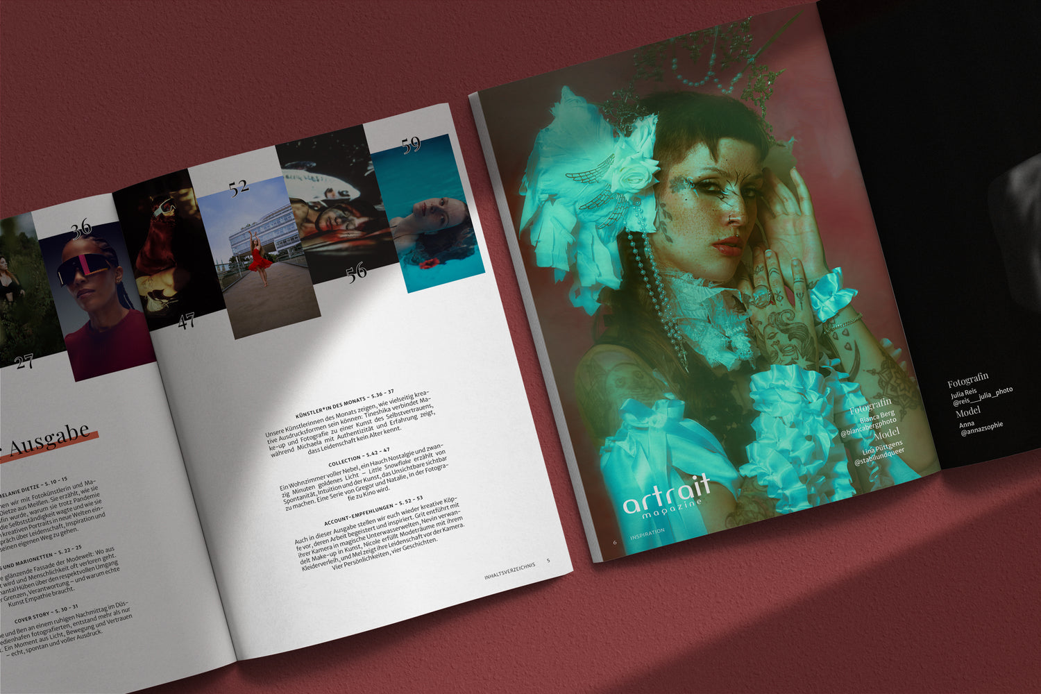 ARTRAIT zeigt, fördert und verbindet Künstler*innen, die mit Portraitfotografie Geschichten erzählen. Wir geben kreativen Stimmen Raum, inspirieren zu mutigen Ideen und schaffen Sichtbarkeit für Menschen vor und hinter der Kamera.