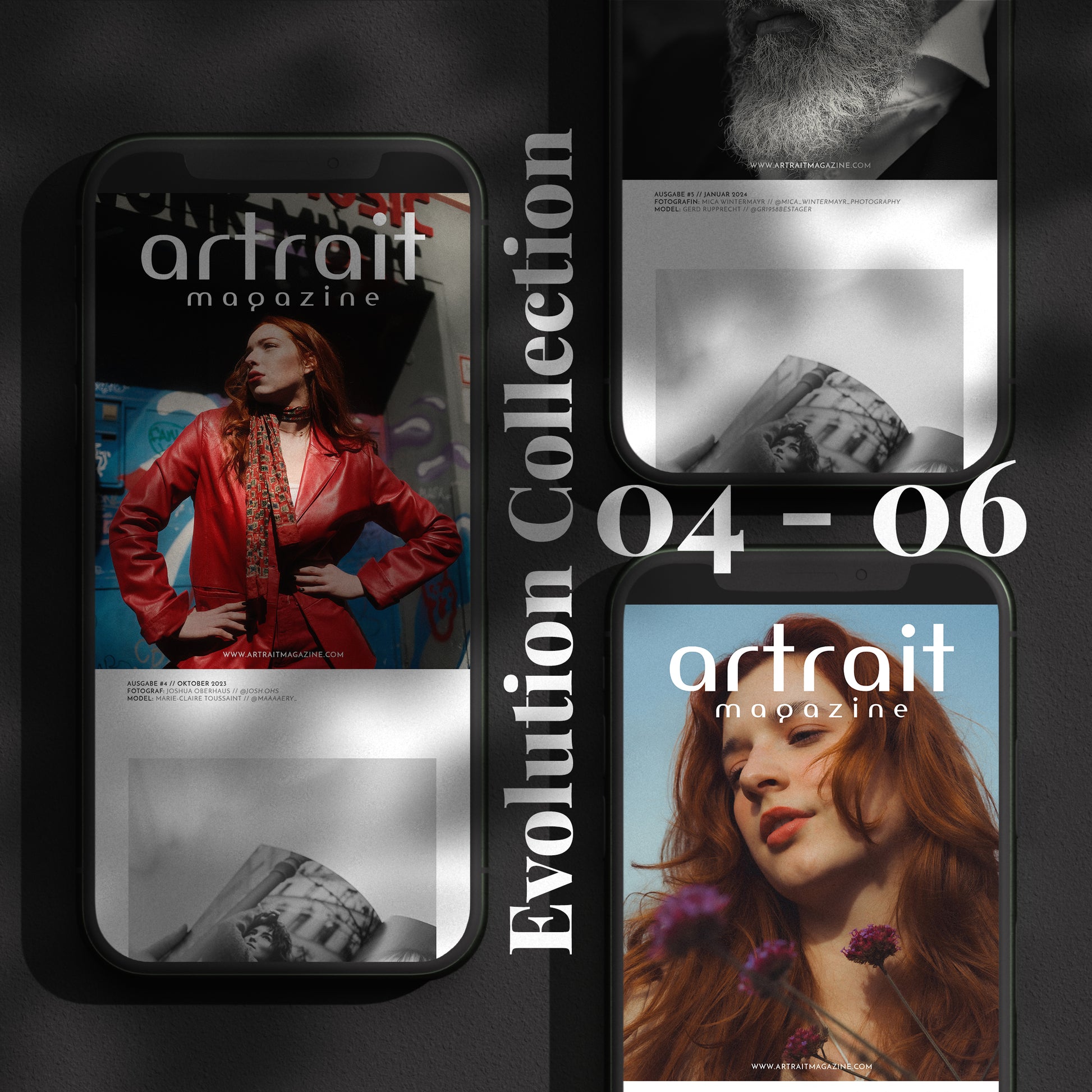 Die Evolution Collection zeigt, wie ARTRAIT sich weiterentwickelt hat. Erlebe die nächsten drei Ausgaben, die unsere Vision erweitert und vertieft haben – mit eindrucksvollen Fotostrecken, spannenden Interviews und mutigen künstlerischen Konzepten.
